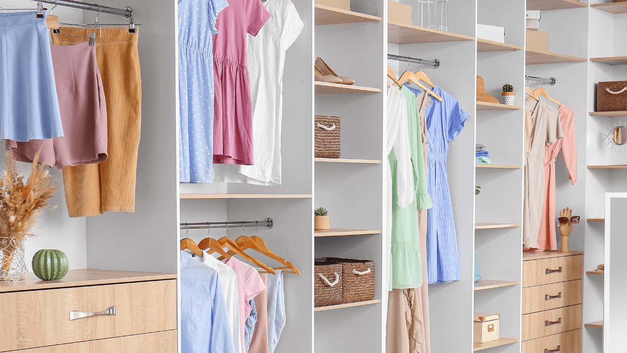 First, sort your clothing and accessories by category to see what you have and what you need to store them.