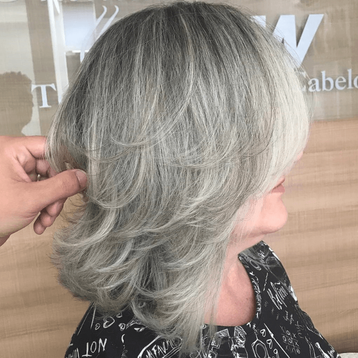 Bangs are always in style and look good on everyone. They add softness and draws attention to your facial features. Plus, they will hide forehead wrinkles and fine lines giving you a more youthful appearance.???????????